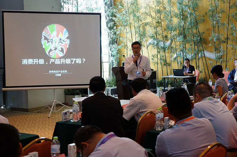 异同食品产业咨询有限公司总经理万剑啸分析了“消费升级,产品升级了吗”。他生动地先以中国2015年的电影票房排行为例,来看未来消费市场的变化。未来的天下是年轻人的天下,年轻人对炫酷及神秘的事物、对具有创造性和颠覆性产品、对时尚和文化元素有需求,说明只有新的、颠覆性的产品才能抓住年轻人的心,只有产品与时俱进才是创新,只有产品有含义、有文化、有沟通才是这个营销时代的特征。在这种情况下,产品升级必须具备以下特点,即可沟通性、网络化、国际范、社交化和时尚感。以后生产企业和品牌的概念会逐渐弱化,而一些小企业,只要做出符合时代的产品,通过产品力的提升,贴合时代的升级和变迁,同样也会成功。