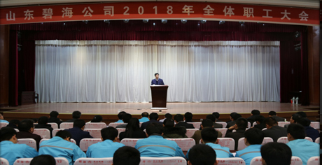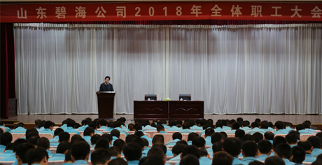 2018年2月28日,山东碧海公司2018年全体职工大会在莒南桃源大酒店胜利召开,公司董事长厉善红、总经理厉善君与碧海全体职工欢聚一堂,一起总结过去,展望未来。