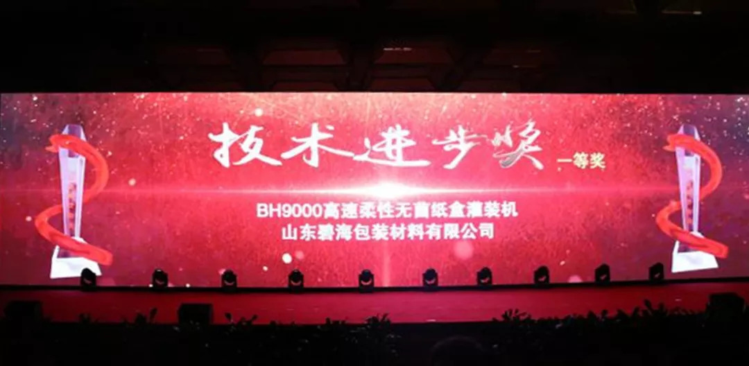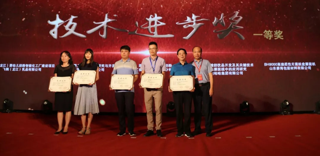 8月25日晚,2018年度中国乳制品工业协会系列颁奖典礼在西安曲江国际会议中心隆重举行。山东碧海包装材料有限公司制造的BH9000高速柔性无菌纸盒灌装机荣获技术进步奖一等奖!